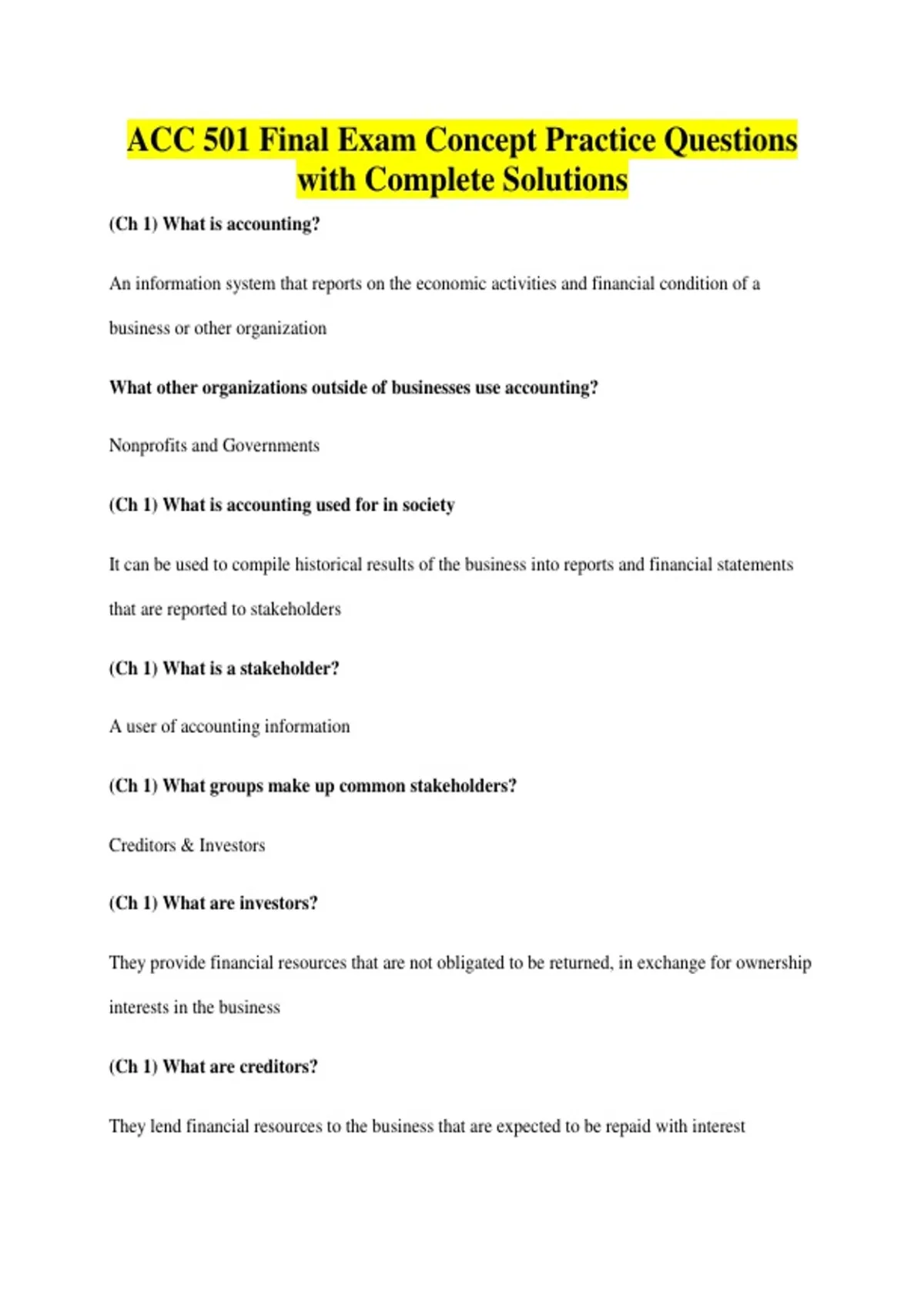 ACC 501 Final Exam Concept Practice Questions with Complete Solutions