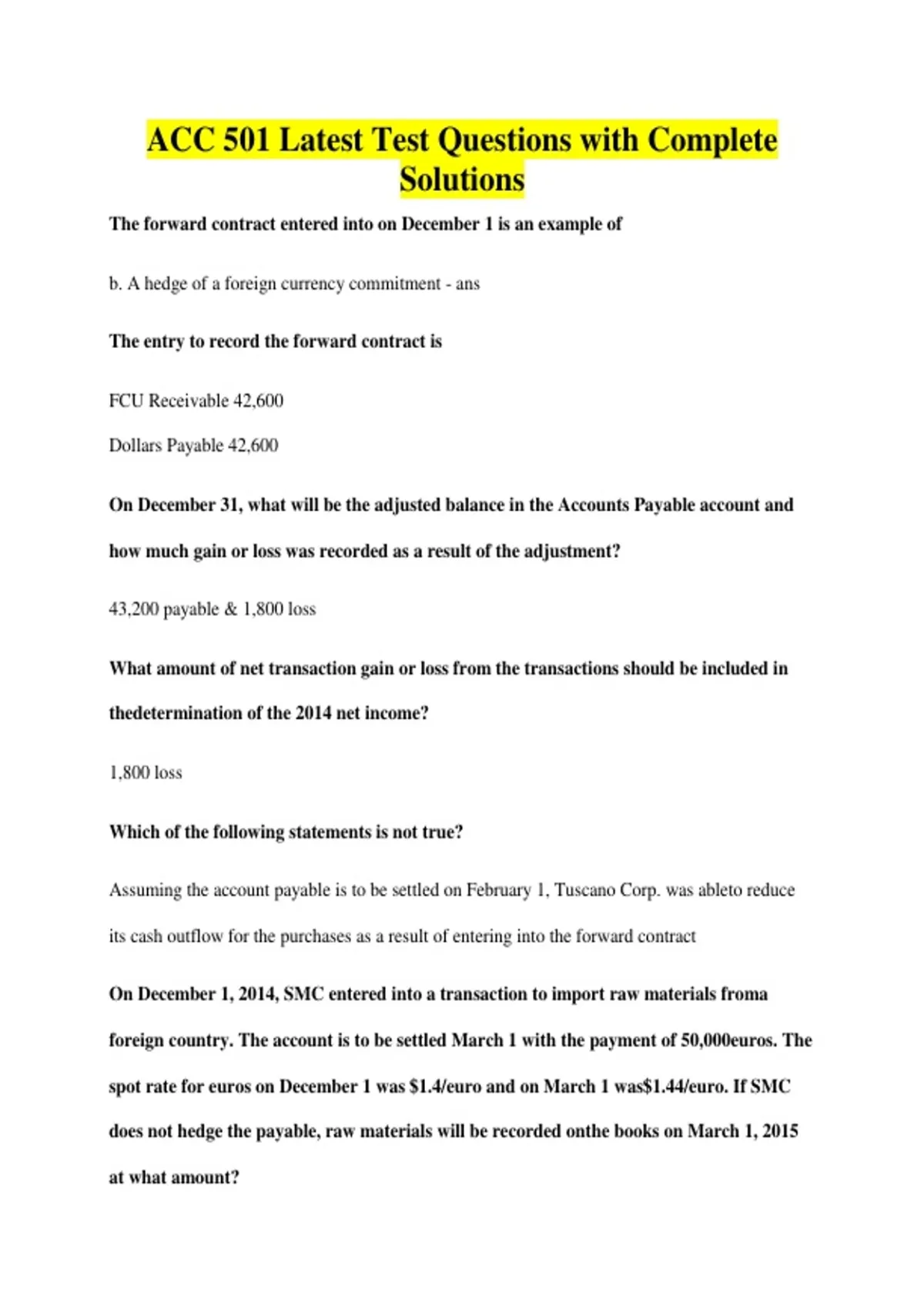 ACC 501 Latest Test Questions with Complete