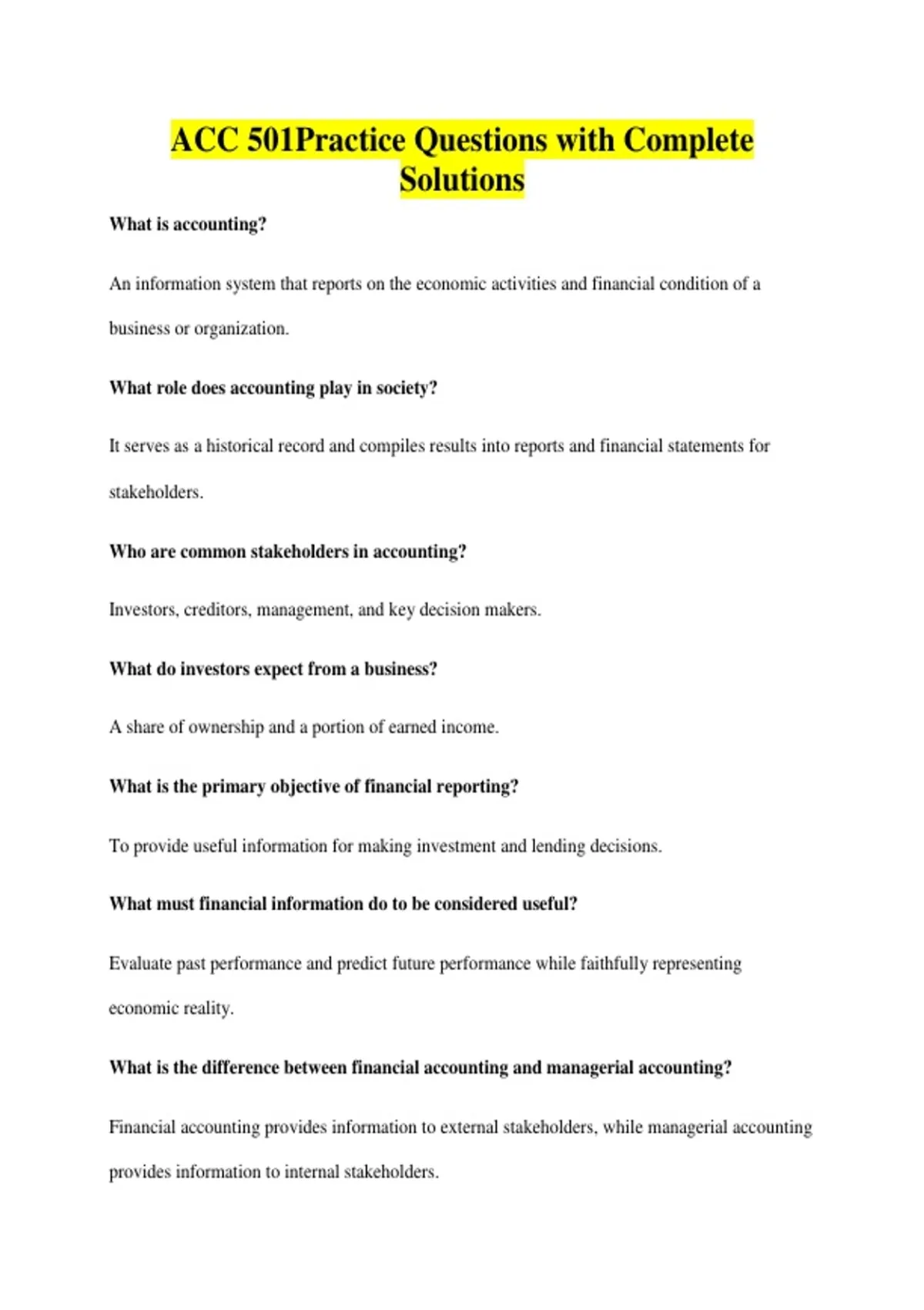 ACC 501Practice Questions with Complete