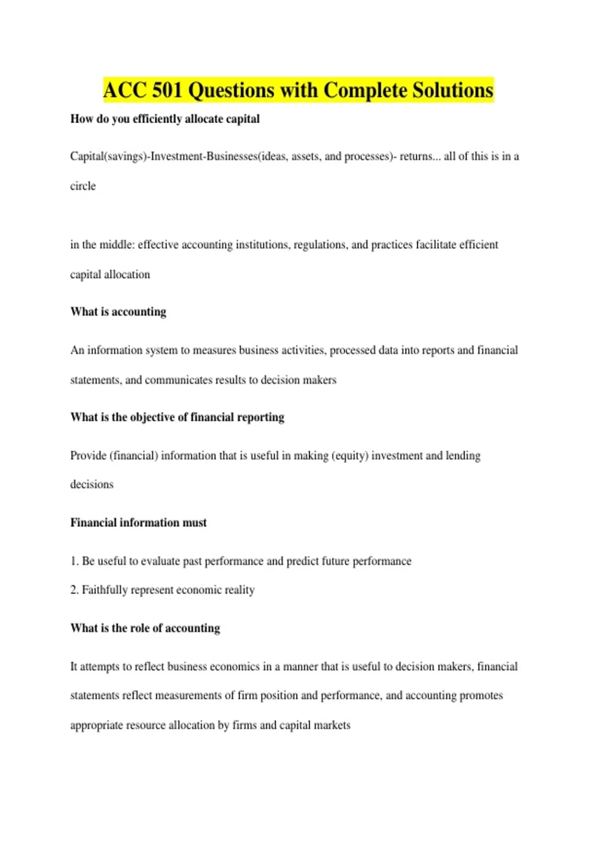 ACC 501 Questions with Complete Solutions