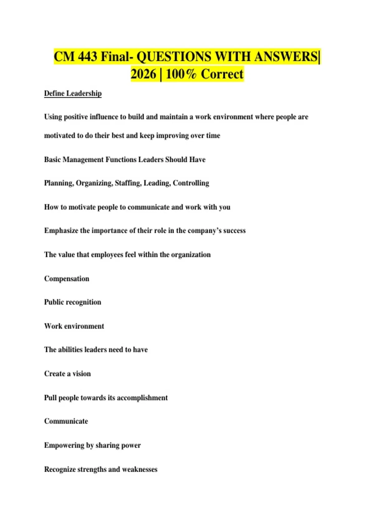 CM 443 Final- QUESTIONS WITH ANSWERS|