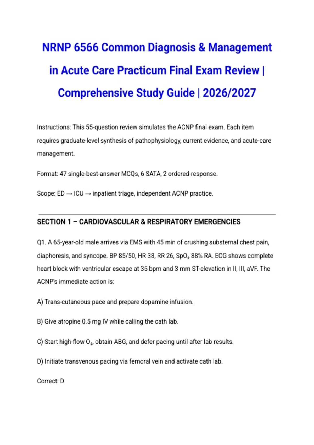 Instructions: This 55-question review simulates the ACNP final exam. Each item