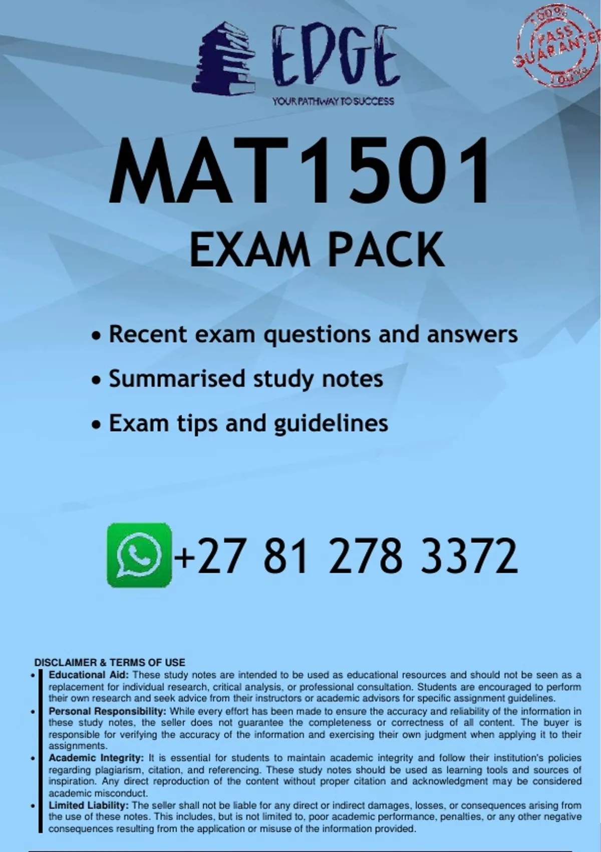 MAT1501 -FUNDAMENTAL MATHEMATICS