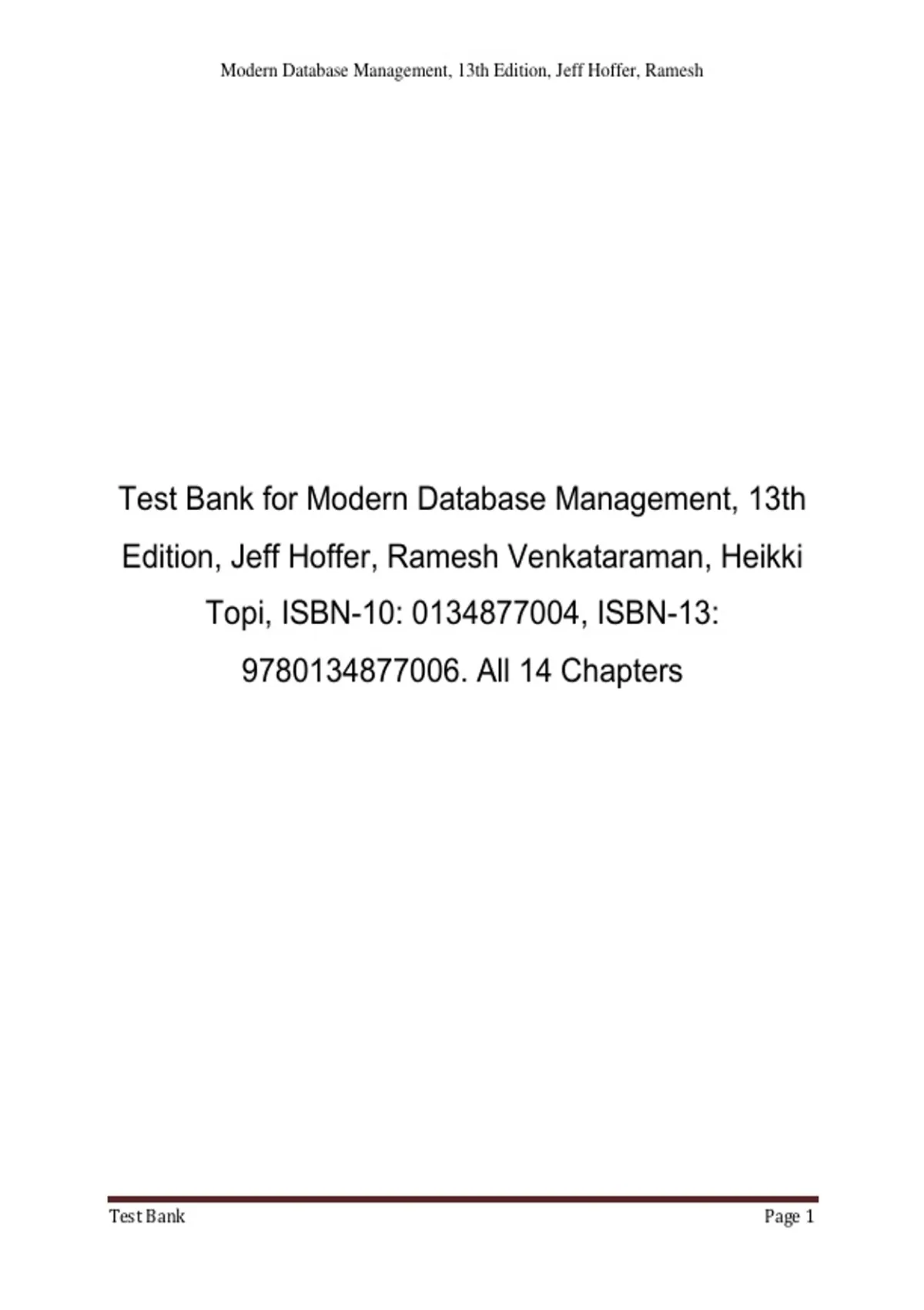 Test Bank for Modern Database Management, 13th