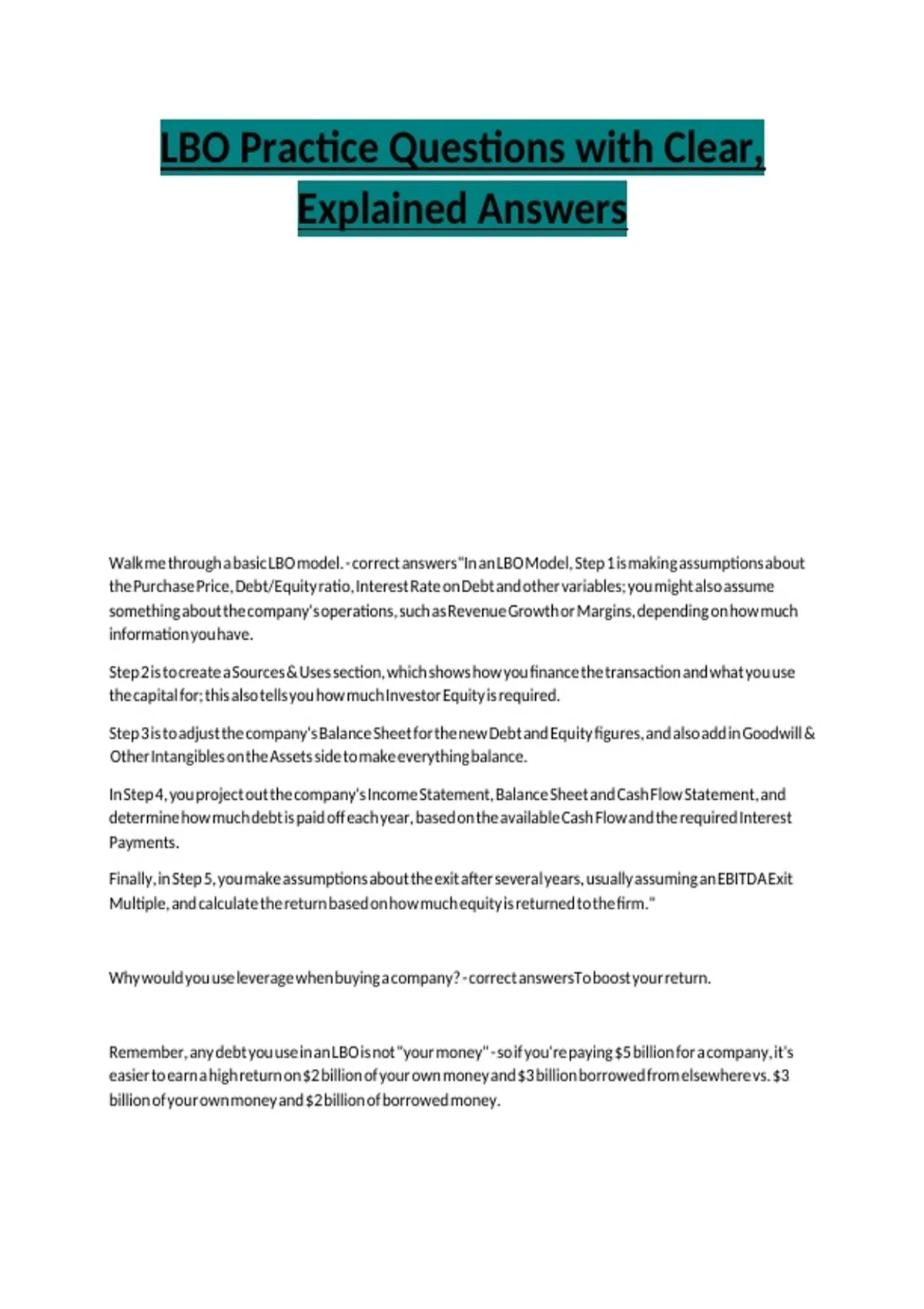 LBO Practice Questions with Clear, Explained Answers