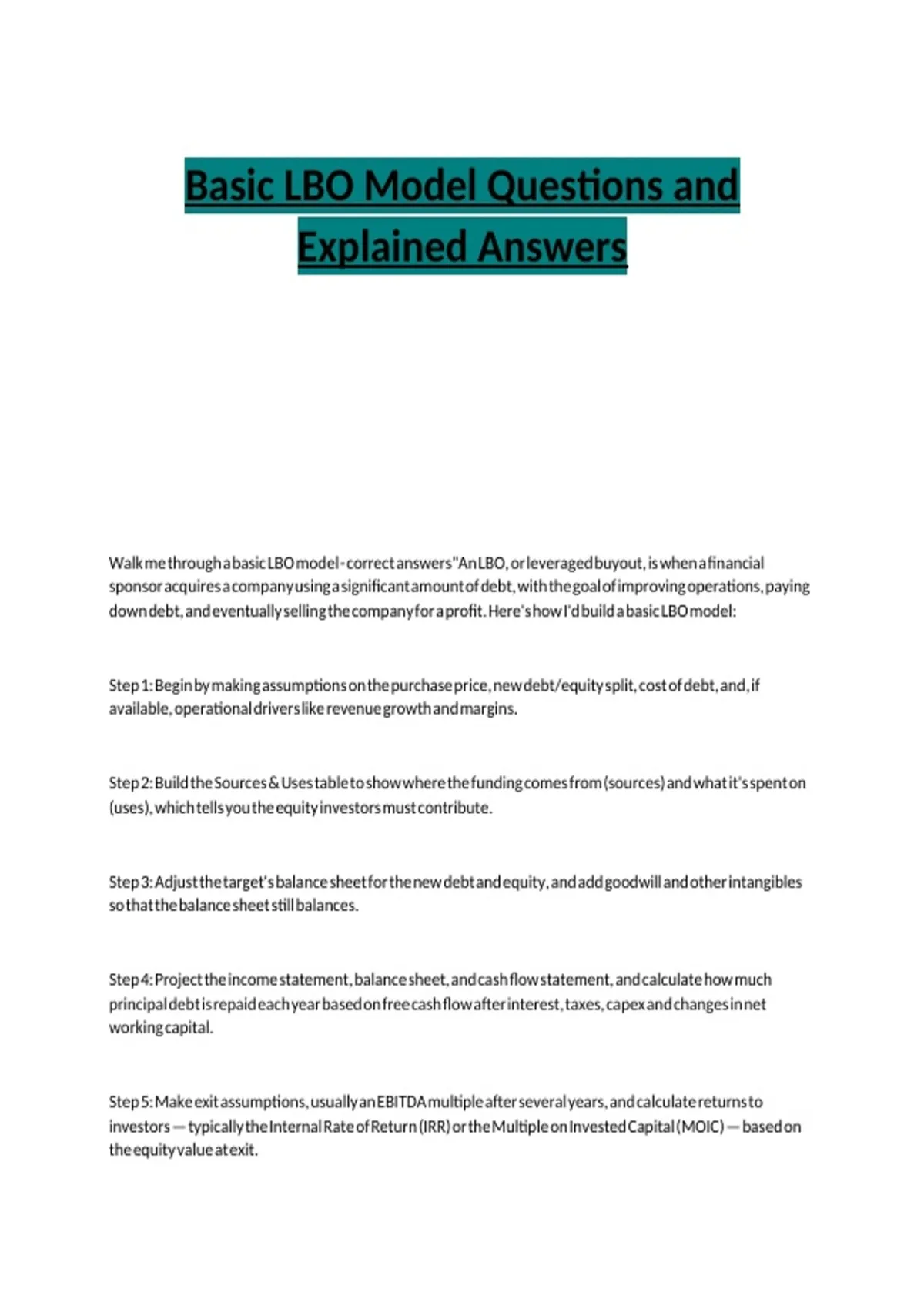 Basic LBO Model Questions and