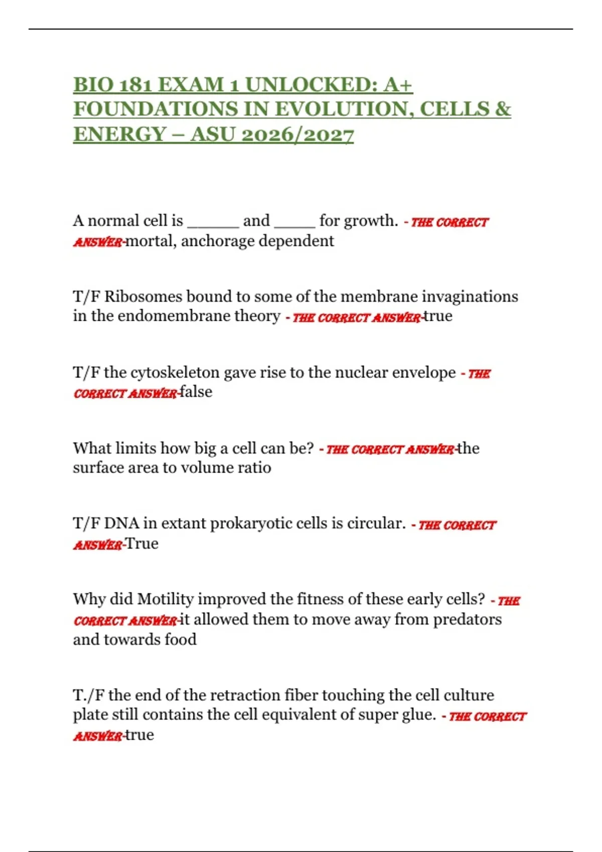 BIO 181 EXAM 1 UNLOCKED: A+ FOUNDATIONS IN EVOLUTION, CELLS & ENERGY – ASU 2026/2027