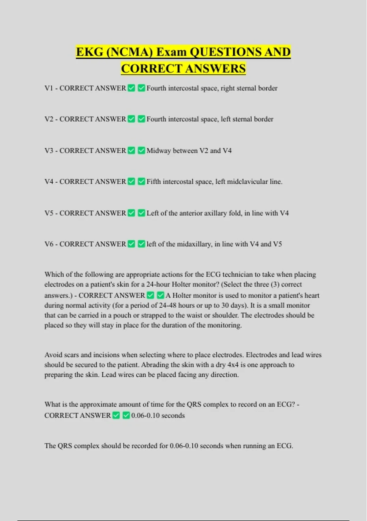 EKG (NCMA) Exam QUESTIONS AND