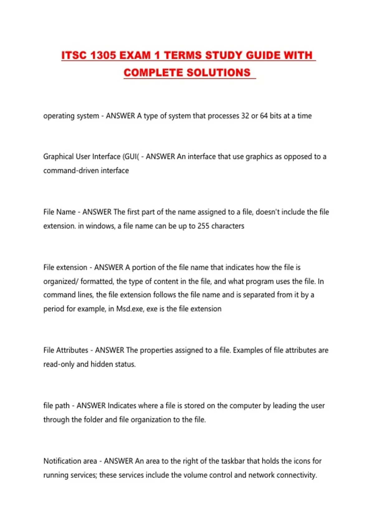 ITSC 1305 EXAM 1 TERMS STUDY GUIDE WITH