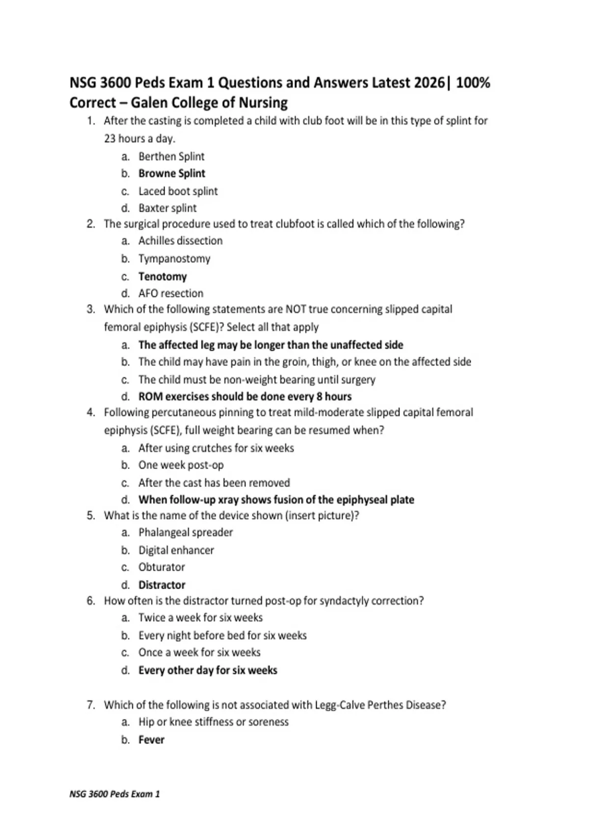 NSG 3600 Peds Exam 1 Questions and Answers Latest 2026| 100%