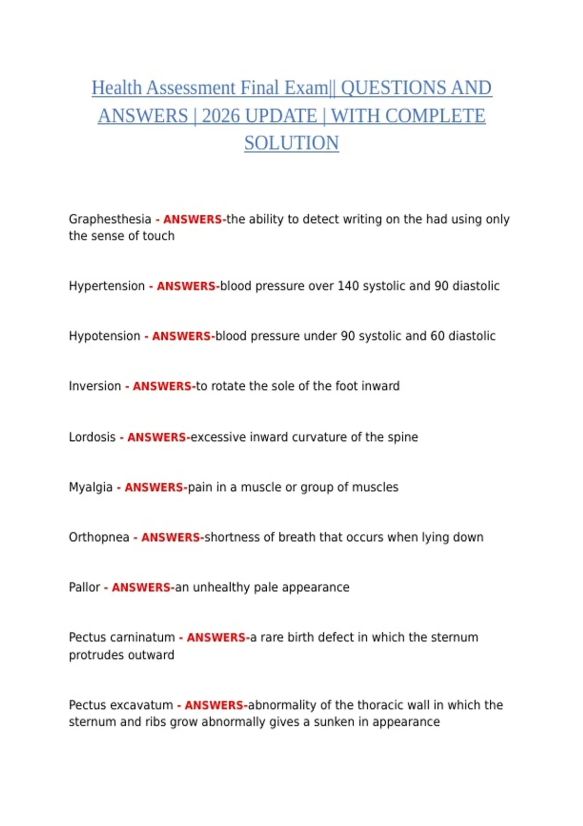 Hypertension - ANSWERS-blood pressure over 140 systolic and 90 diastolic