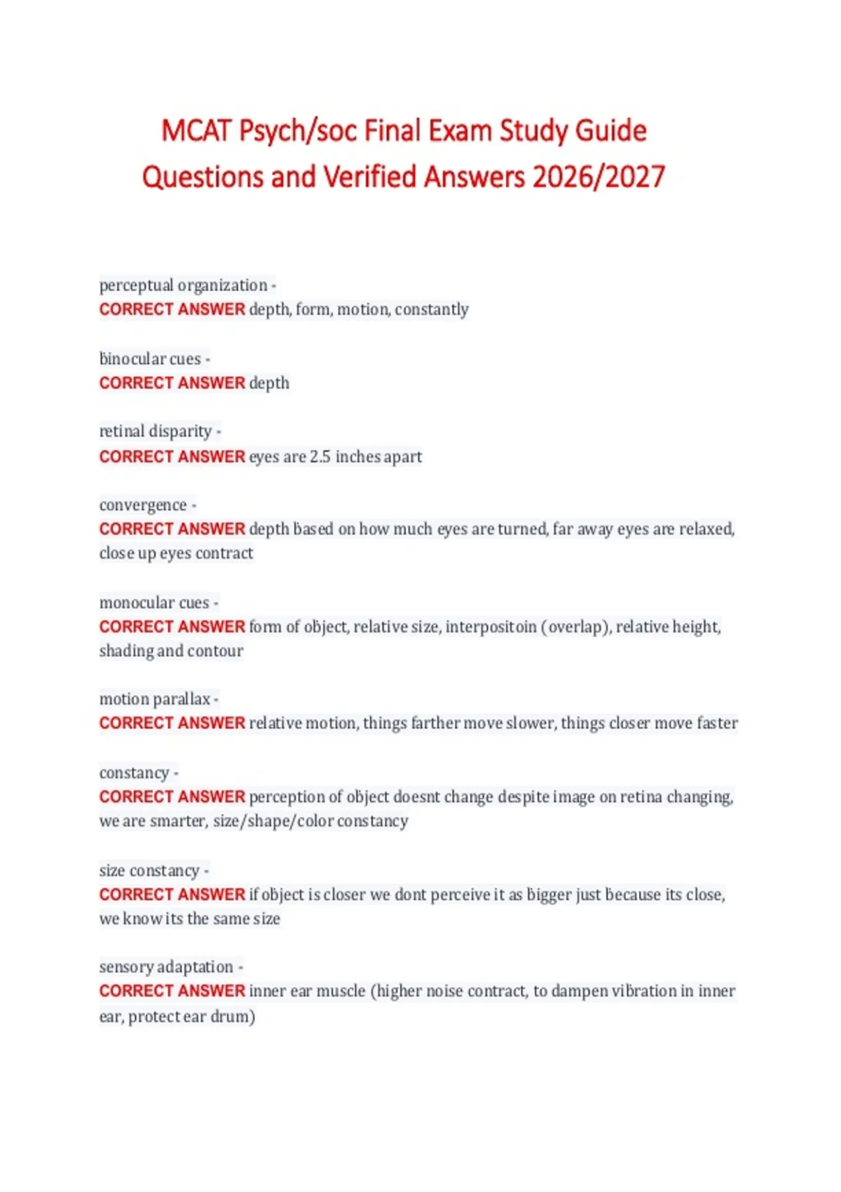 Questions and Verified Answers 2026/2027
