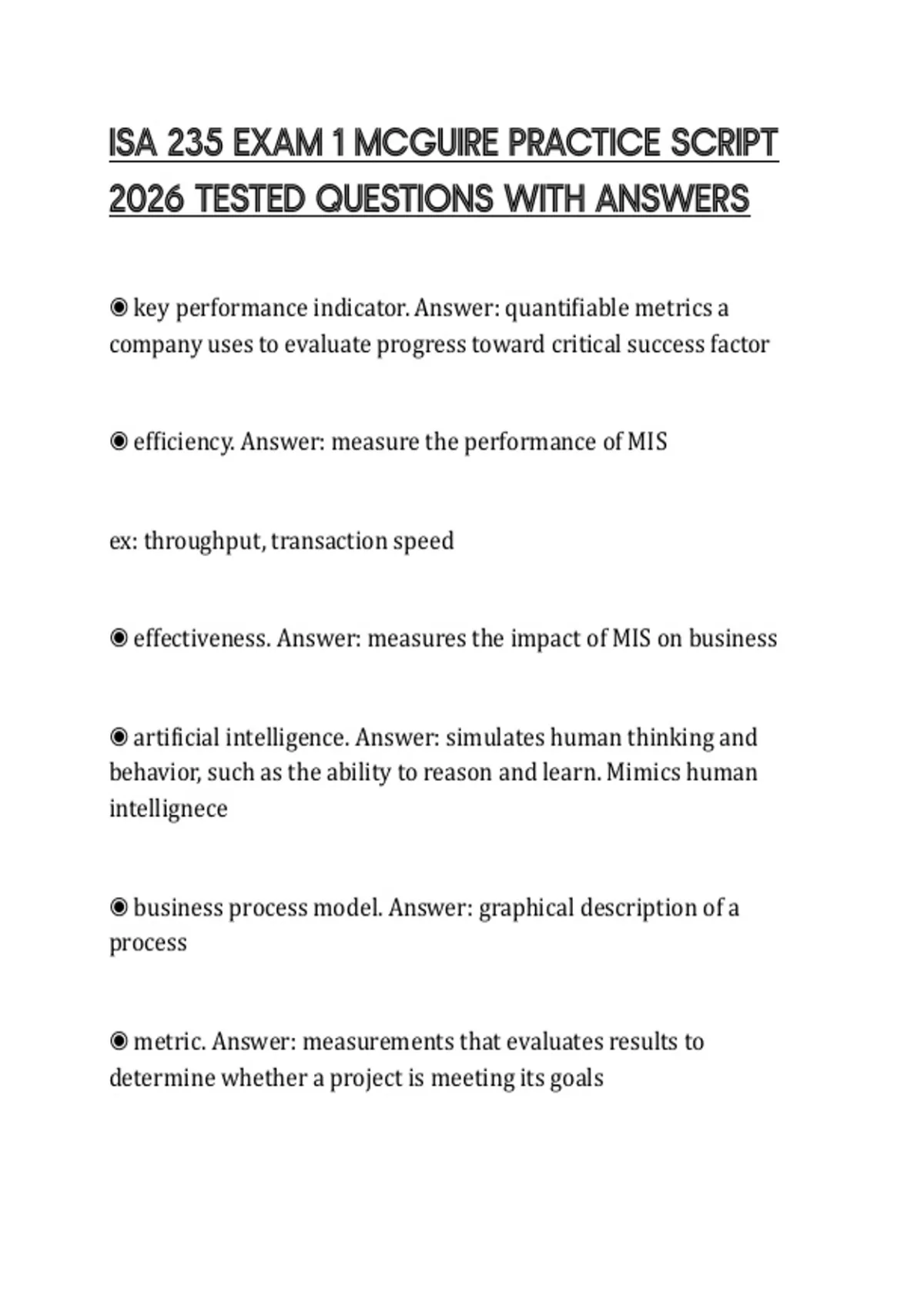 ISA 235 EXAM 1 MCGUIRE PRACTICE SCRIPT 2026 TESTED QUESTIONS WITH ANSWERS