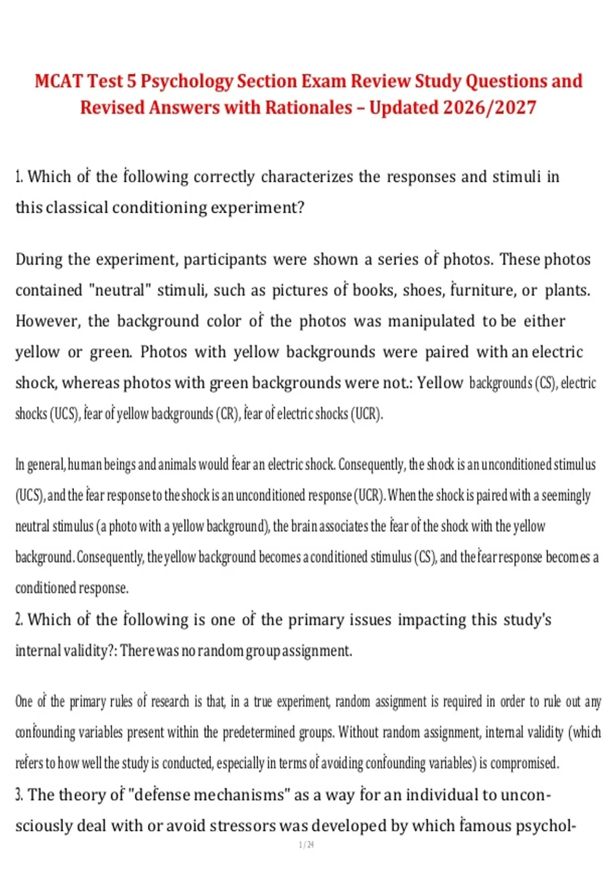 (UCS), and the ḟear response to the shock is an unconditioned response (UCR). When the shock is paired with a seemingly