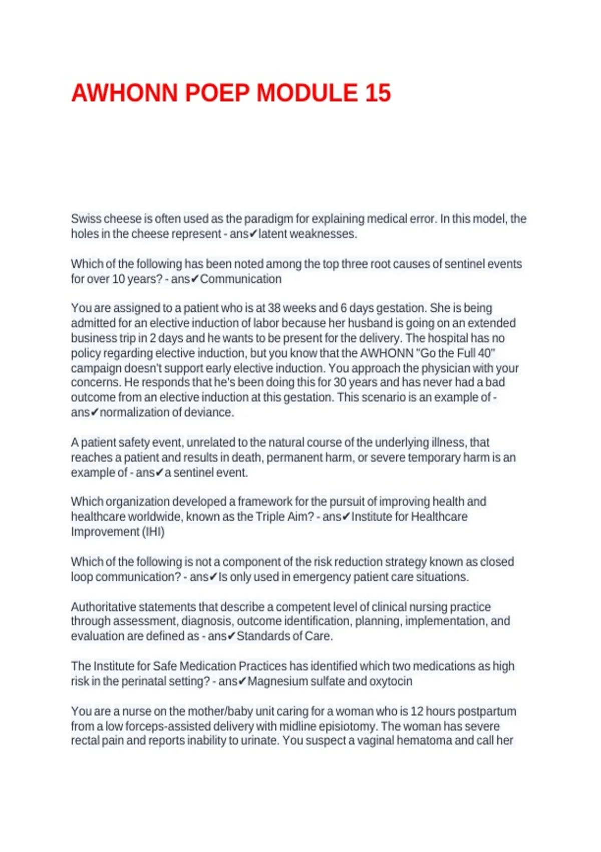 AWHONN POEP MODULE 15