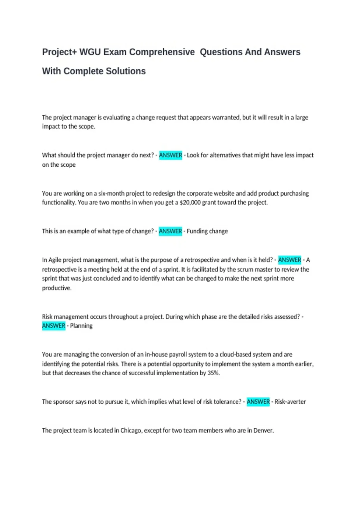 Project+ WGU Exam Comprehensive Questions And Answers