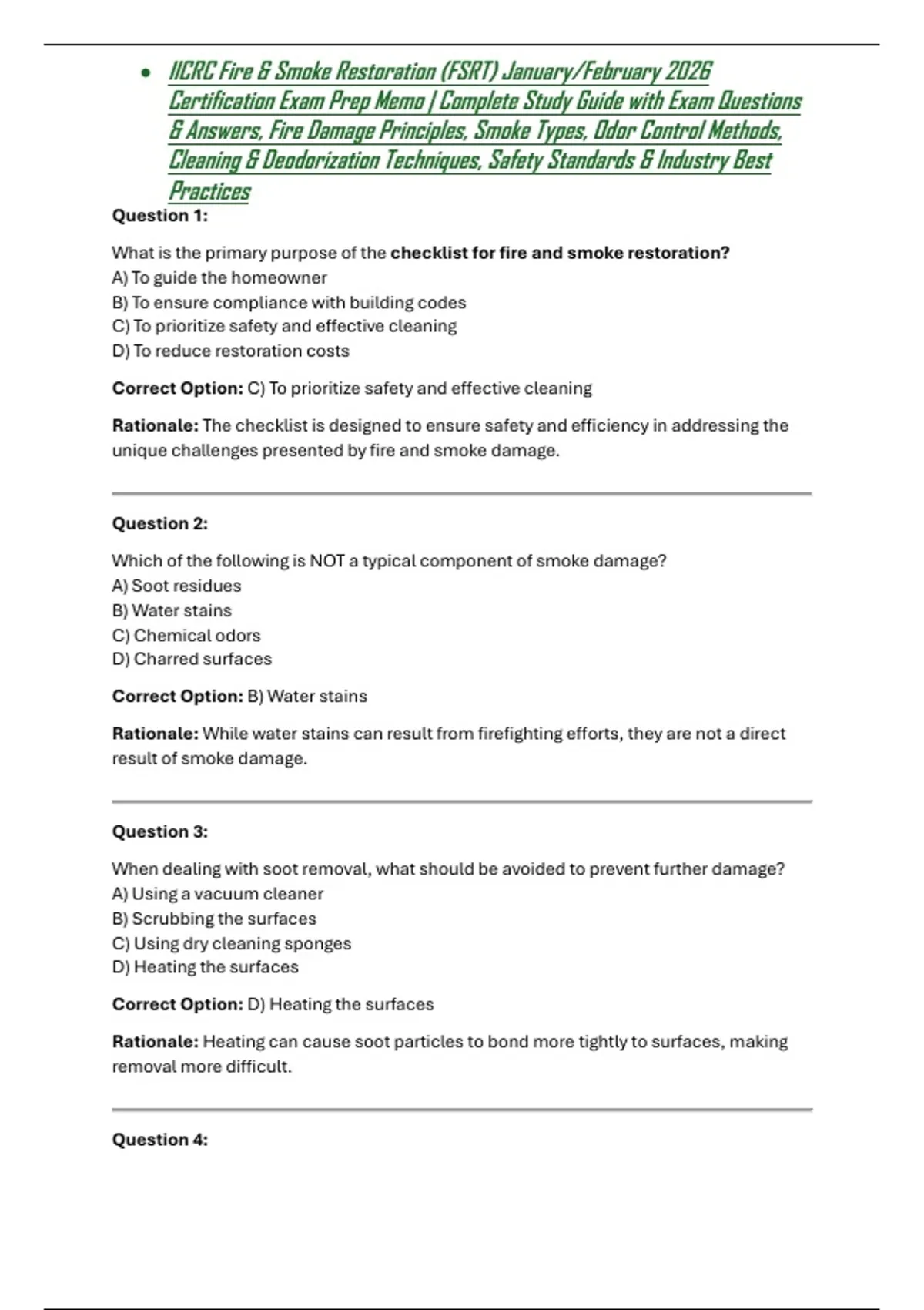 & Answers, Fire Damage Principles, Smoke Types, Odor Control Methods,