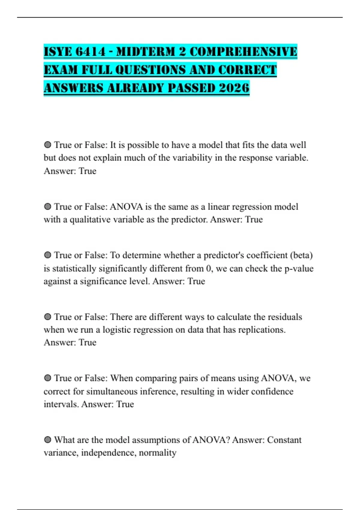 ◍ True or False: Simple Linear Regression and ANOVA models have