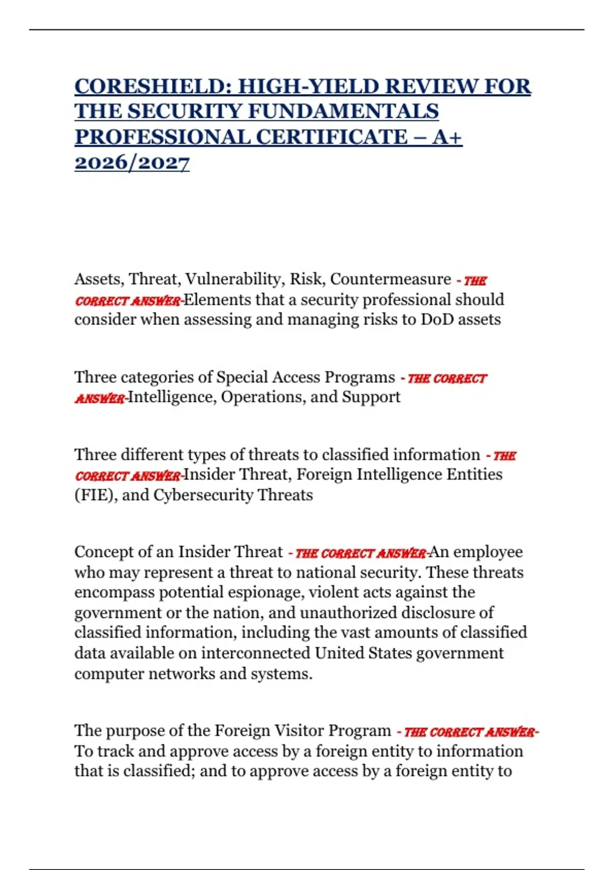 CORRECT ANSWER-Insider Threat, Foreign Intelligence Entities