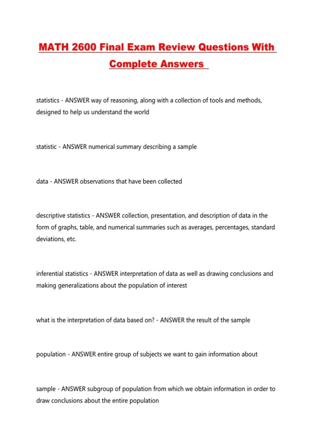MATH 2600 Final Exam Review Questions With Complete Answers ...