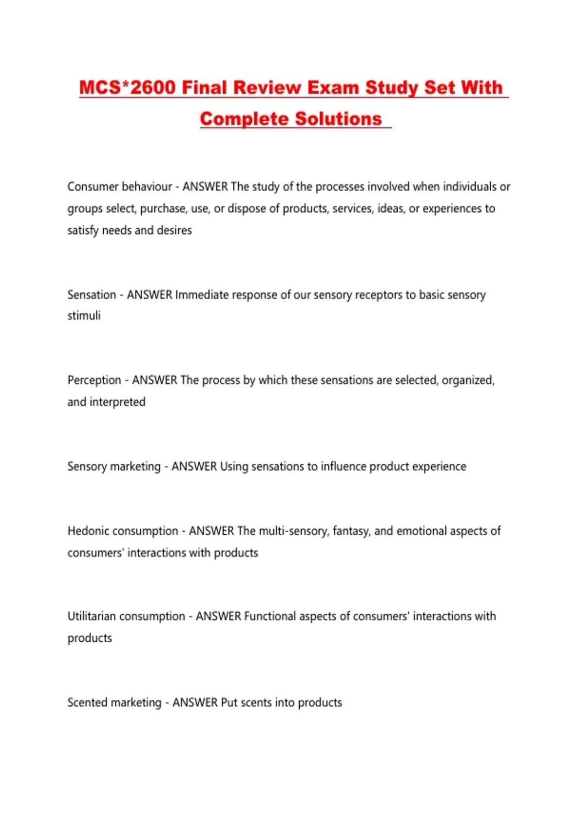 MCS*2600 Final Review Exam Study Set With