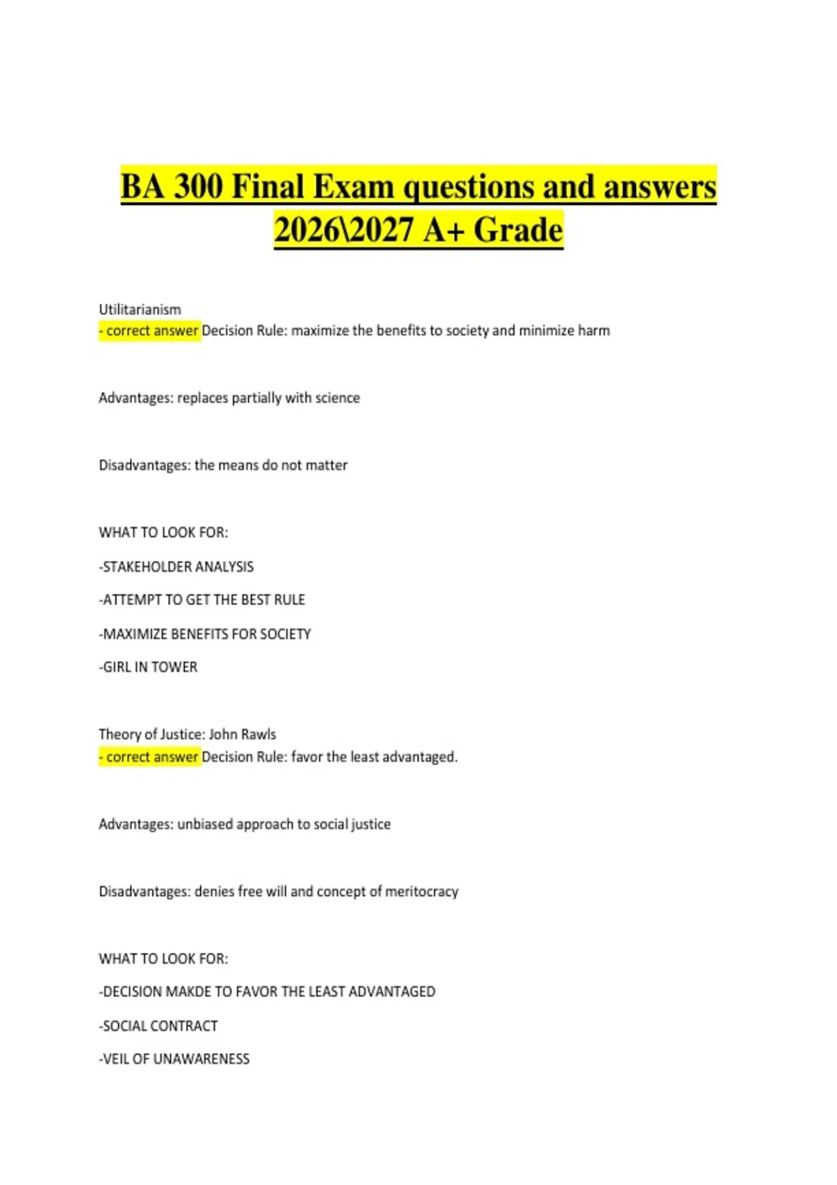 - correct answer Decision Rule: favor the least advantaged.