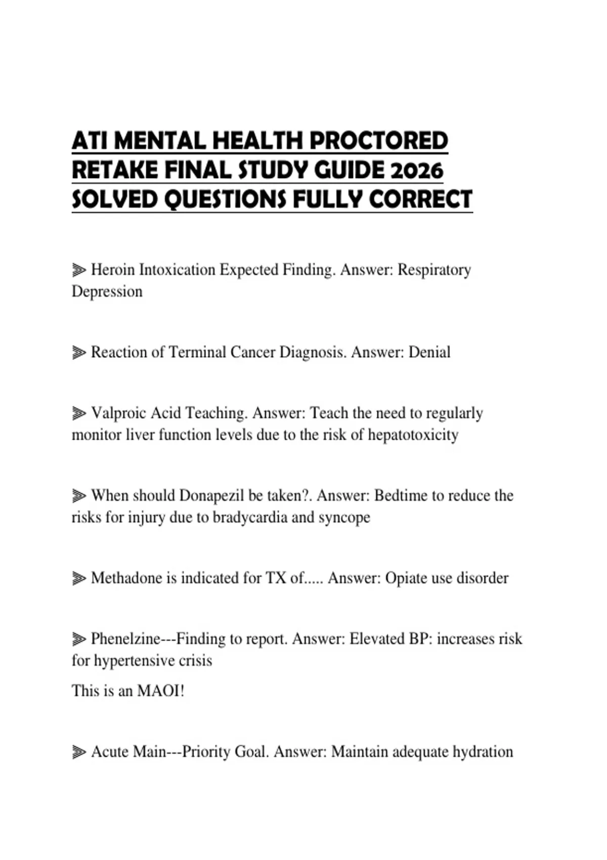 ATI MENTAL HEALTH PROCTORED RETAKE FINAL STUDY GUIDE 2026 SOLVED QUESTIONS FULLY CORRECT
