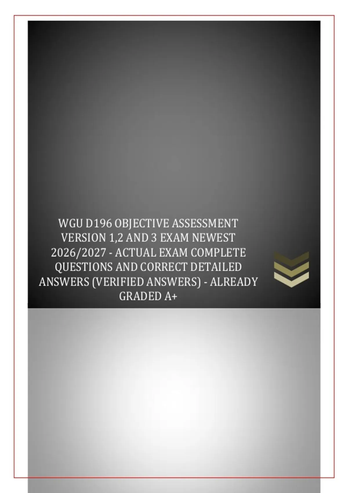 WGU D196 OBJECTIVE ASSESSMENT VERSION 1,2 AND 3 EXAM NEWEST 2026/2027 - ACTUAL EXAM COMPLETE QUESTIONS AND CORRECT DETAILED ANSWERS (VERIFIED ANSWERS) - ALREADY GRADED A+