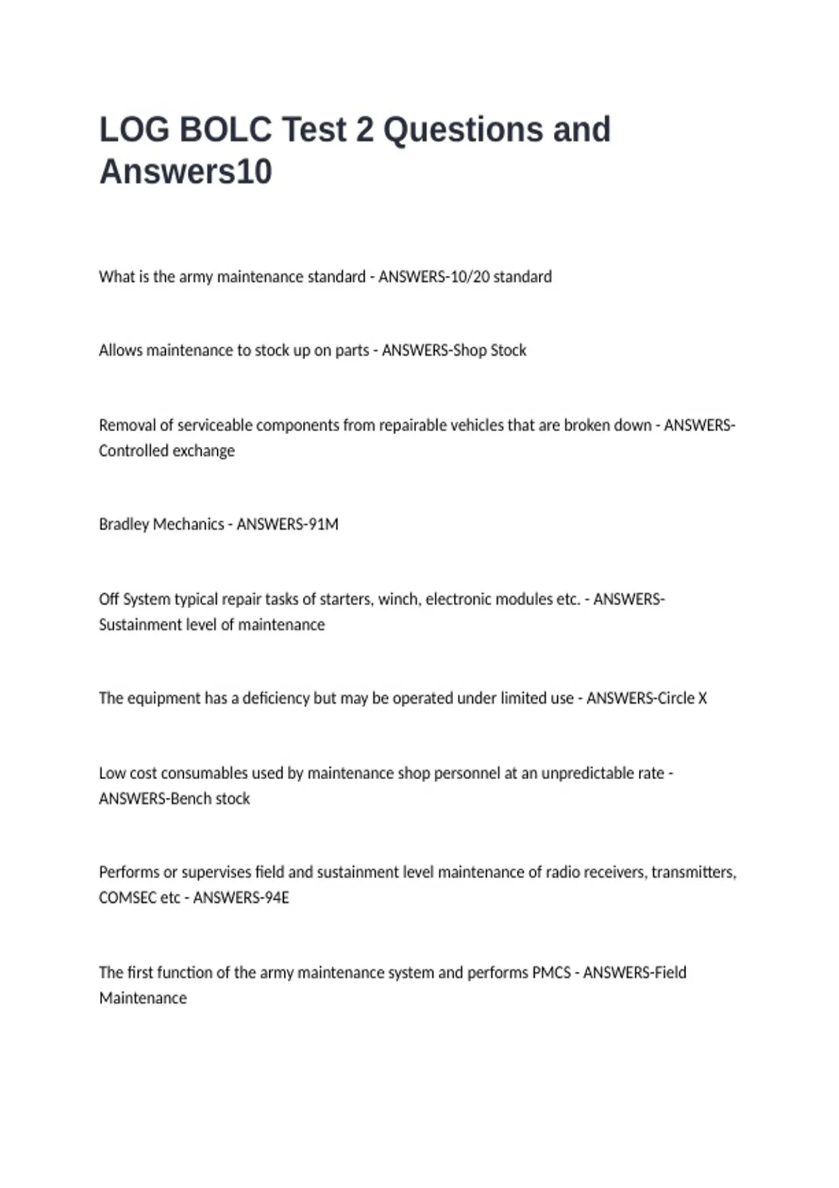 What is the army maintenance standard - ANSWERS-10/20 standard