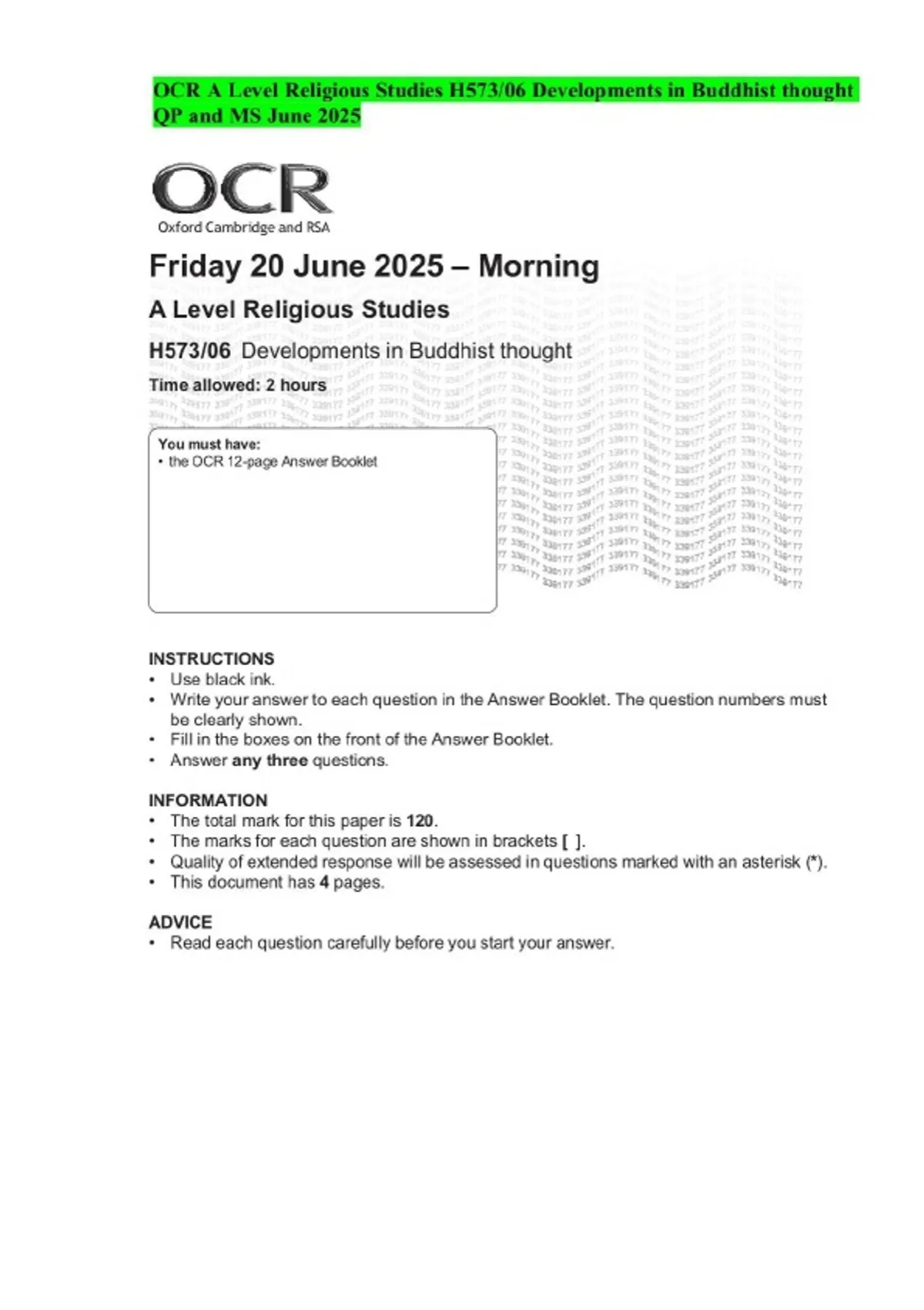OCR A Level Religious Studies H573/06 Developments in Buddhist thought QP and MS June 2025