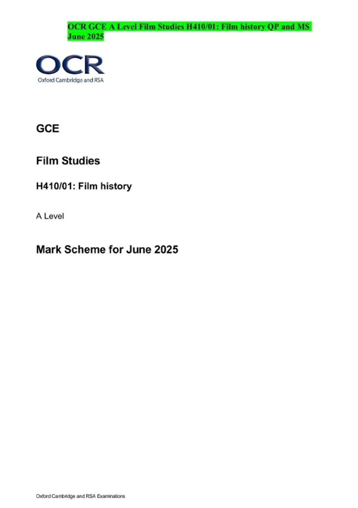 OCR GCE A Level Film Studies H410/01: Film history QP and MS June 2025