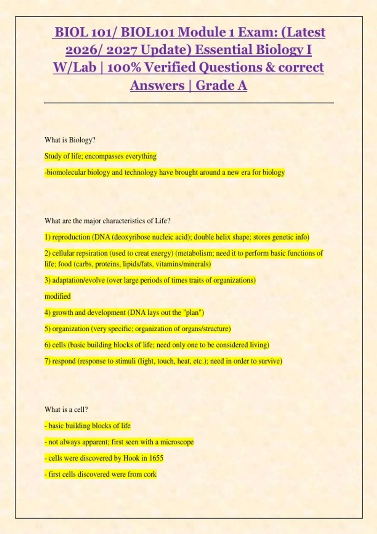 , BIOL 101/ BIOL101 Module 1 Exam: (Latest