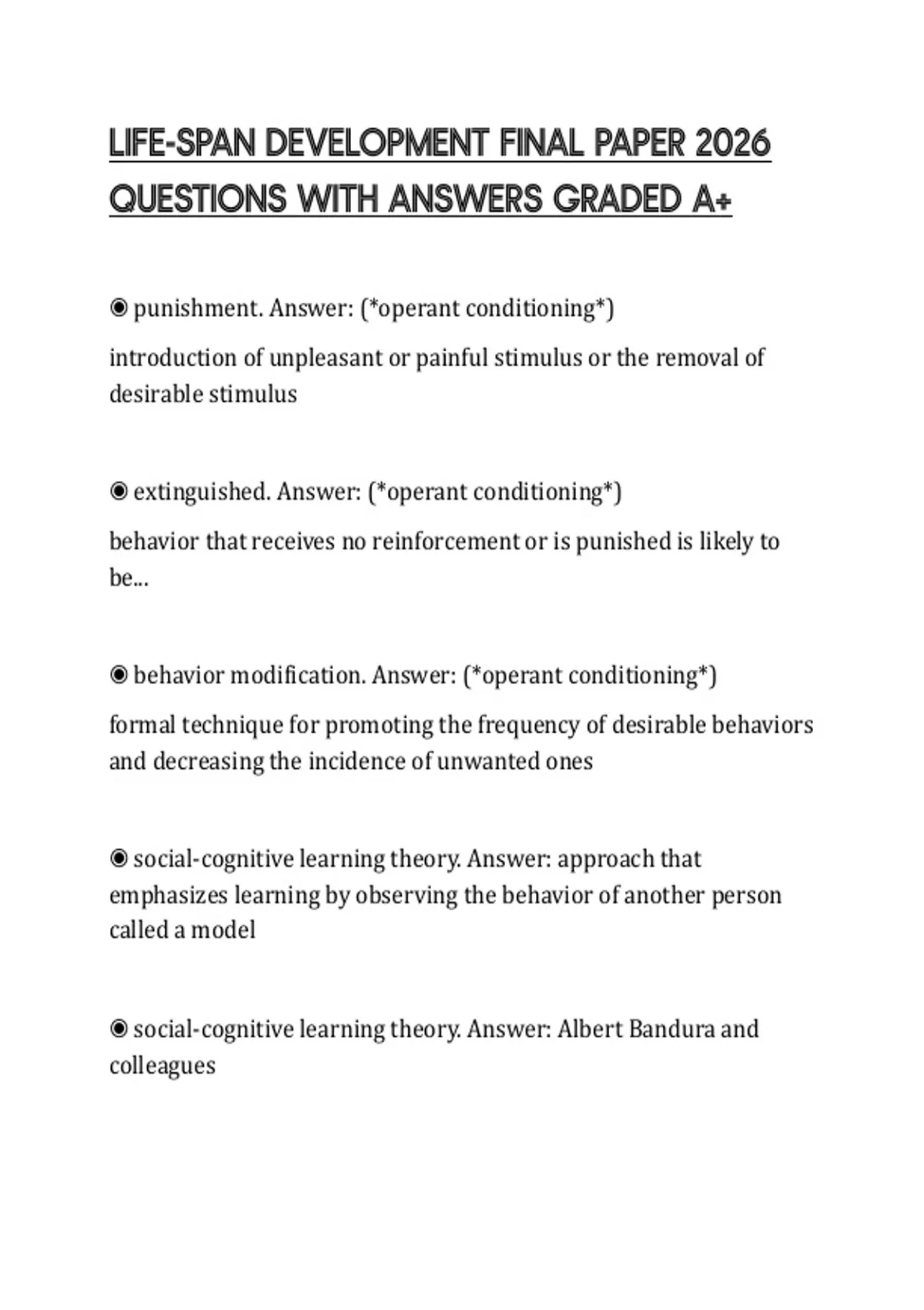 LIFE-SPAN DEVELOPMENT FINAL PAPER 2026 QUESTIONS WITH ANSWERS GRADED A+
