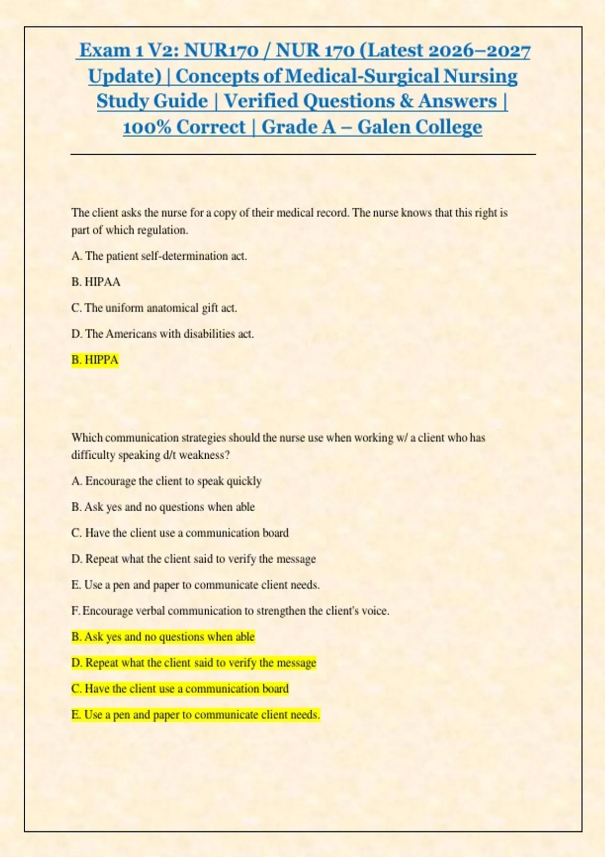 100% Correct | Grade A – Galen College