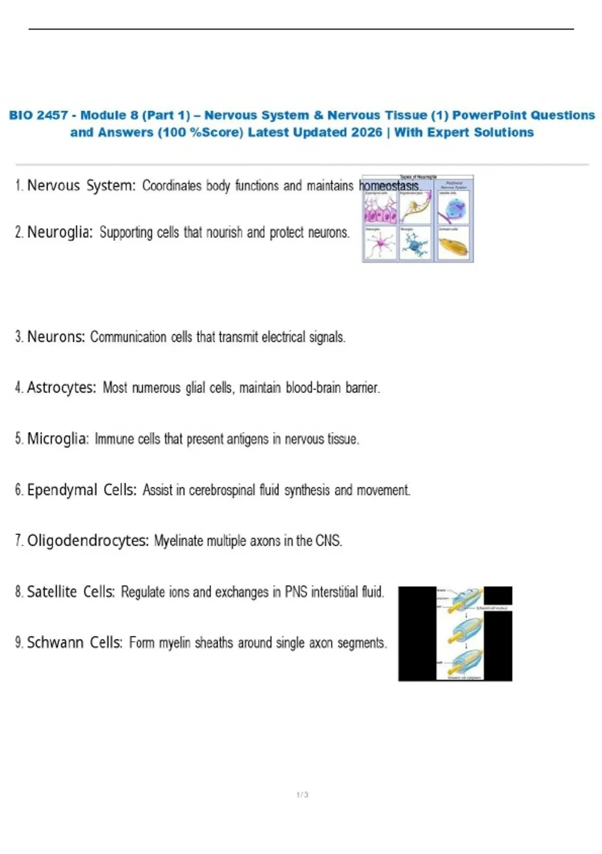 BIO 2457 - Module 8 (Part 1) – Nervous System & Nervous Tissue (1) PowerPoint Questions and Answers (100 %Score) Latest Updated 2026 | With Expert Solutions