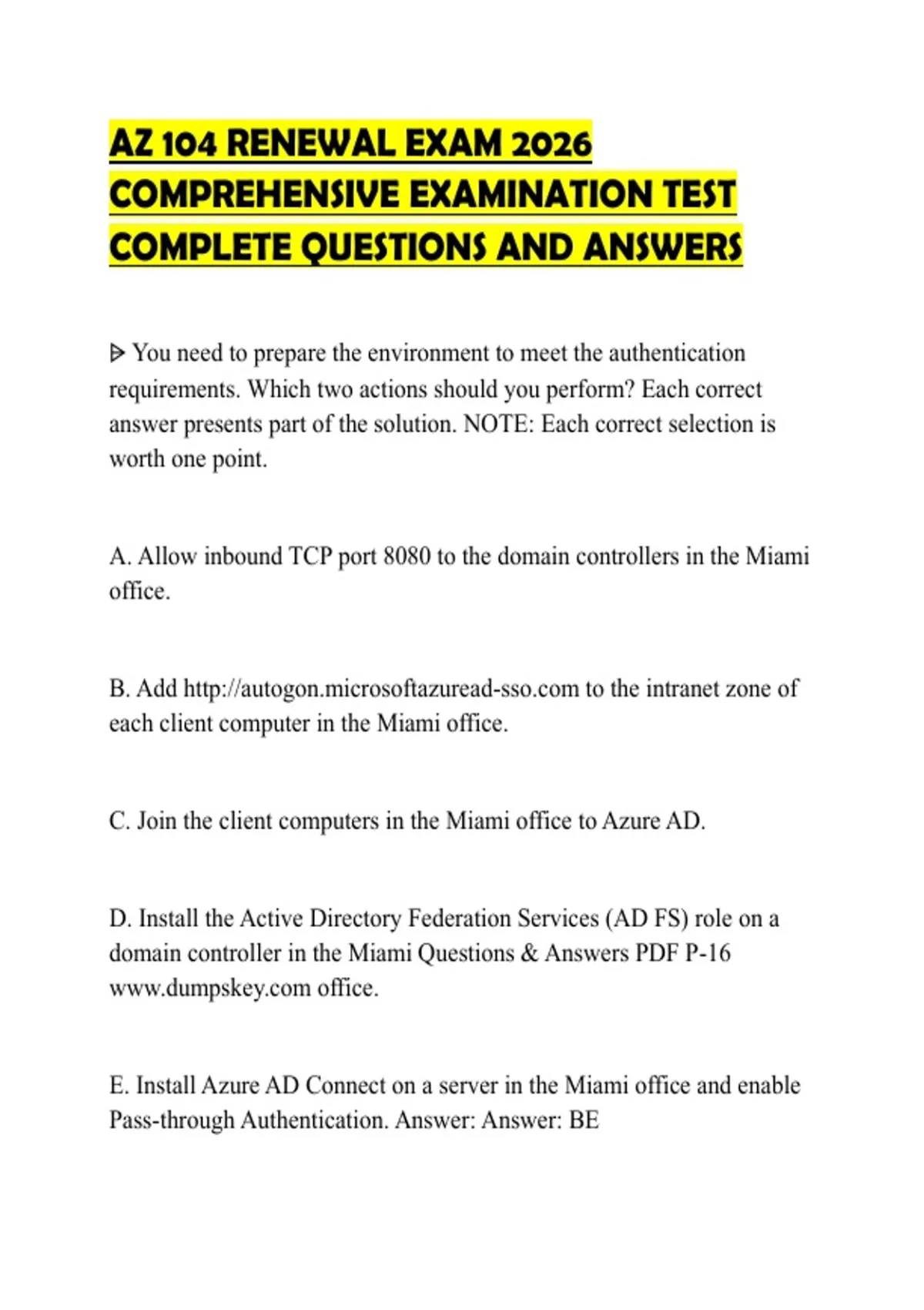 Pass-through Authentication. Answer: Answer: BE