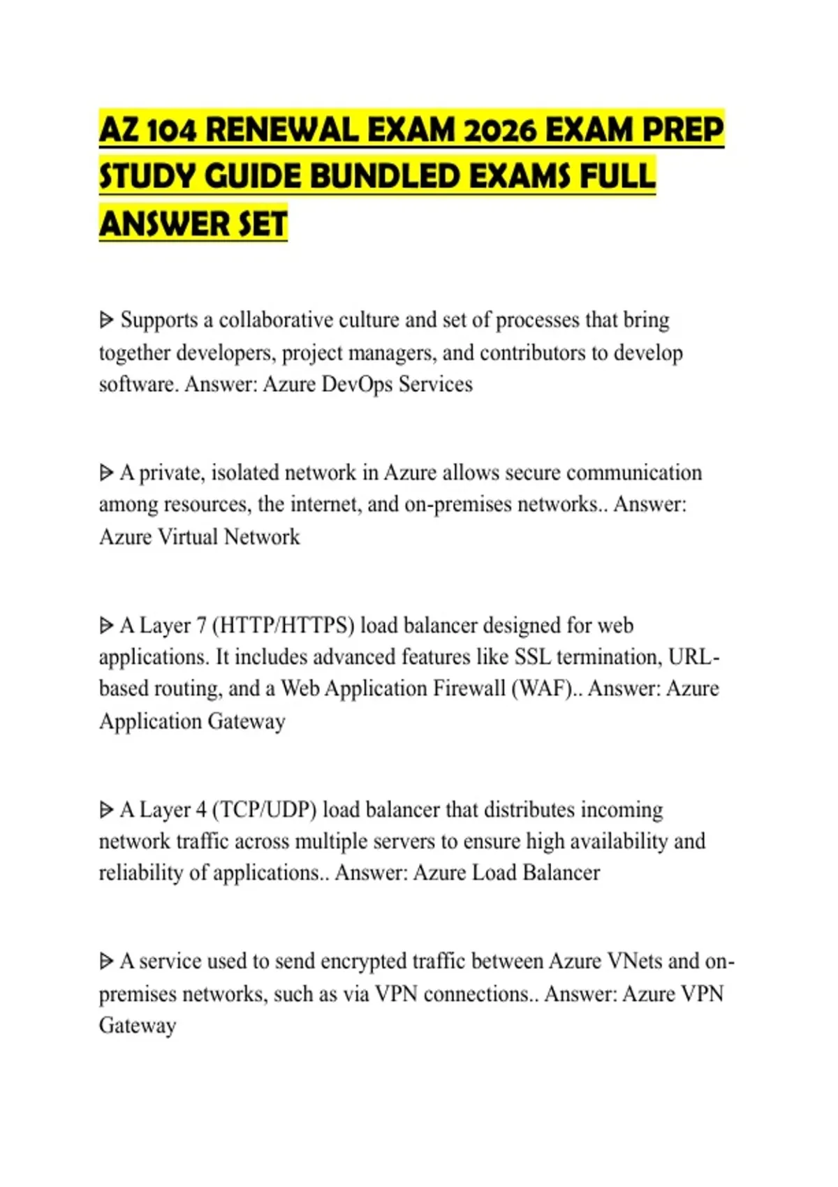 AZ 104 RENEWAL EXAM 2026 EXAM PREP STUDY GUIDE BUNDLED EXAMS FULL ANSWER SET