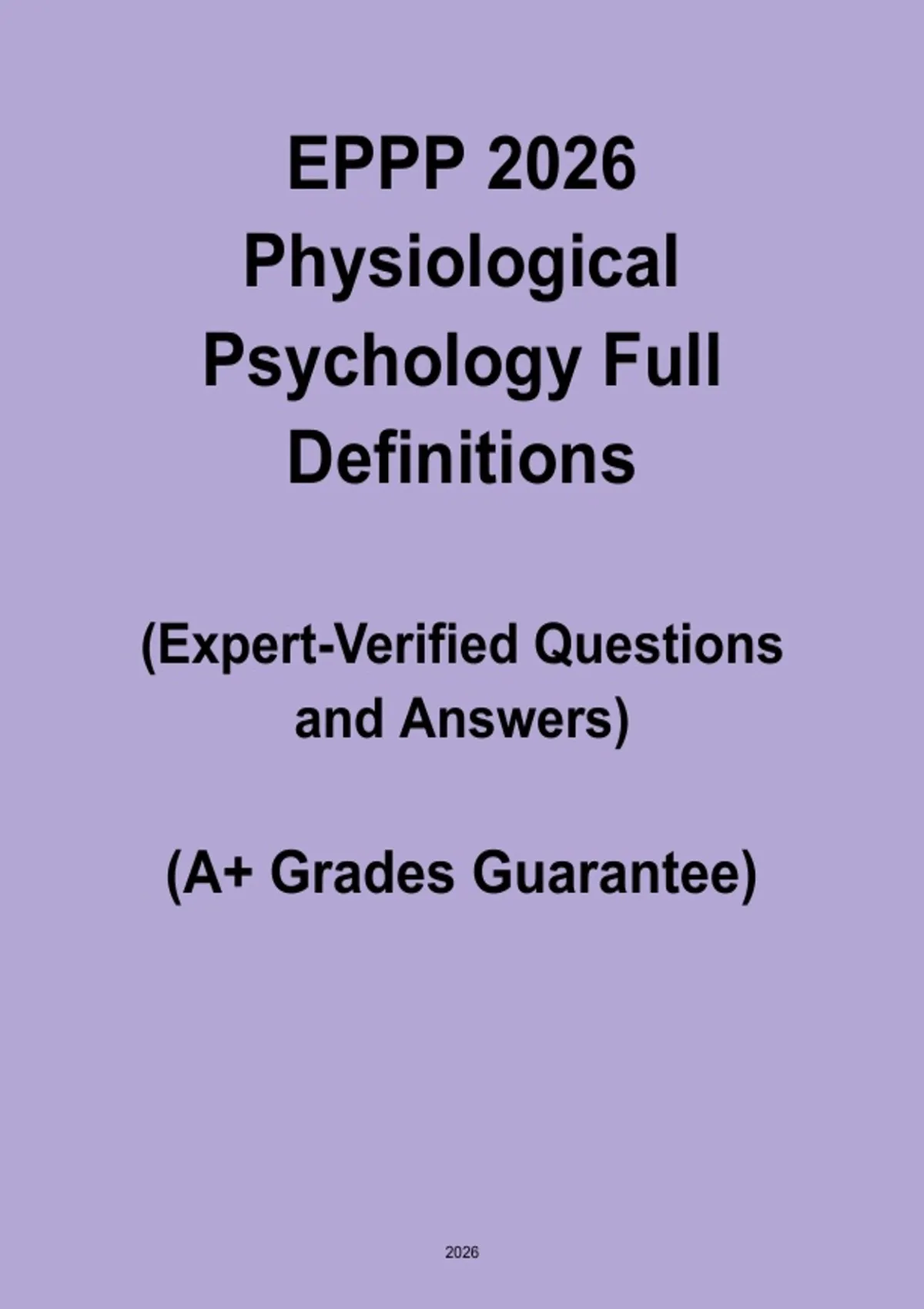The EPPP Physiological Psychology Full Definitions guide is a comprehensive reference resource designed to help psychology candidates master the biological bases of behavior tested on the Examination for Professional Practice in Psychology (EPPP). This document provides clear, exam-focused definitions covering neuroanatomy, neurochemistry, brain structures, nervous system functioning, and physiological processes relevant to psychological practice. Ideal for graduate psychology students and EPPP exam candidates, this definitions guide supports quick revision, improves concept clarity, and strengthens readiness for the EPPP licensing exam.