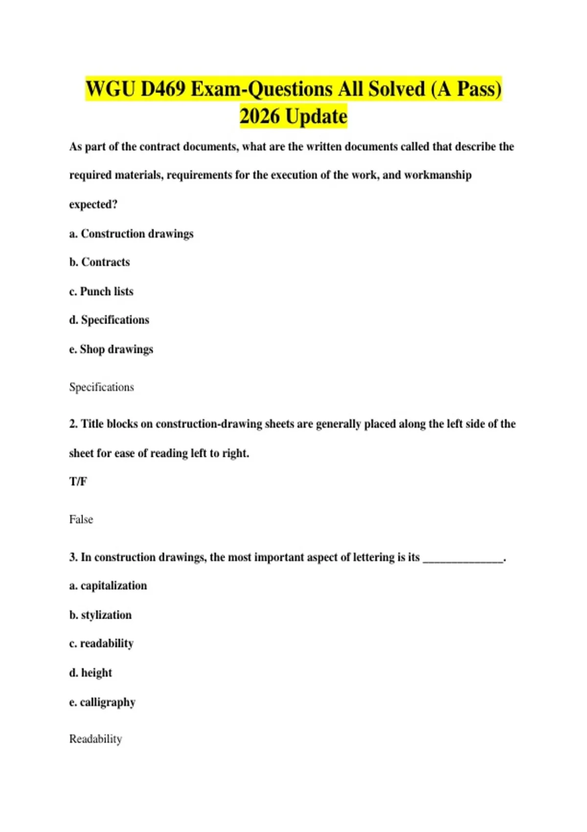 WGU D469 Exam-Questions All Solved (A Pass) 2026 Update