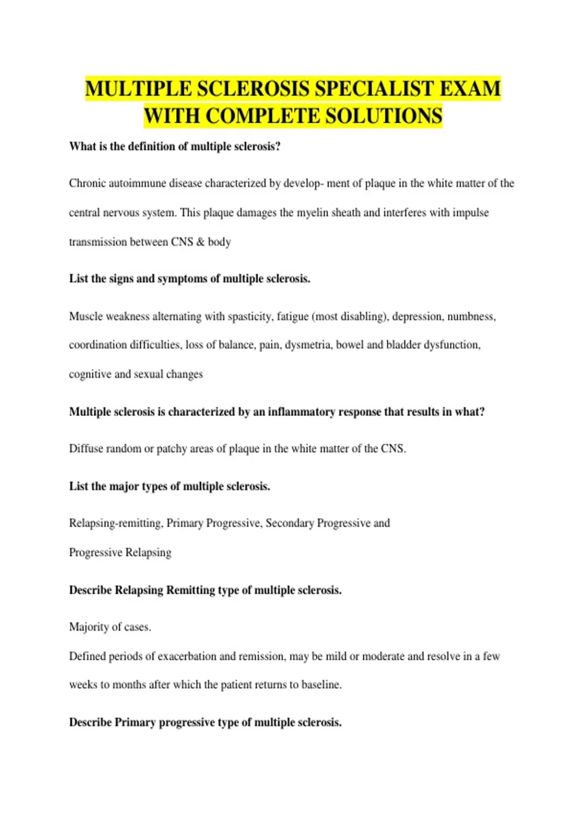 MULTIPLE SCLEROSIS SPECIALIST EXAM
