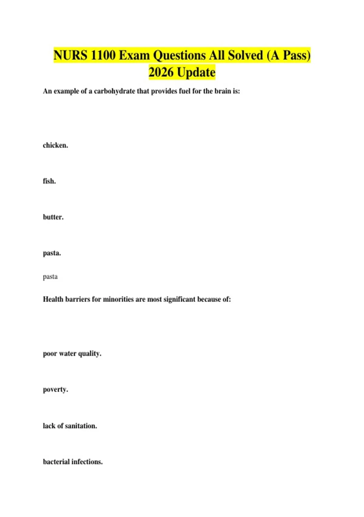 NURS 1100 Exam Questions All Solved (A Pass) 2026 Update