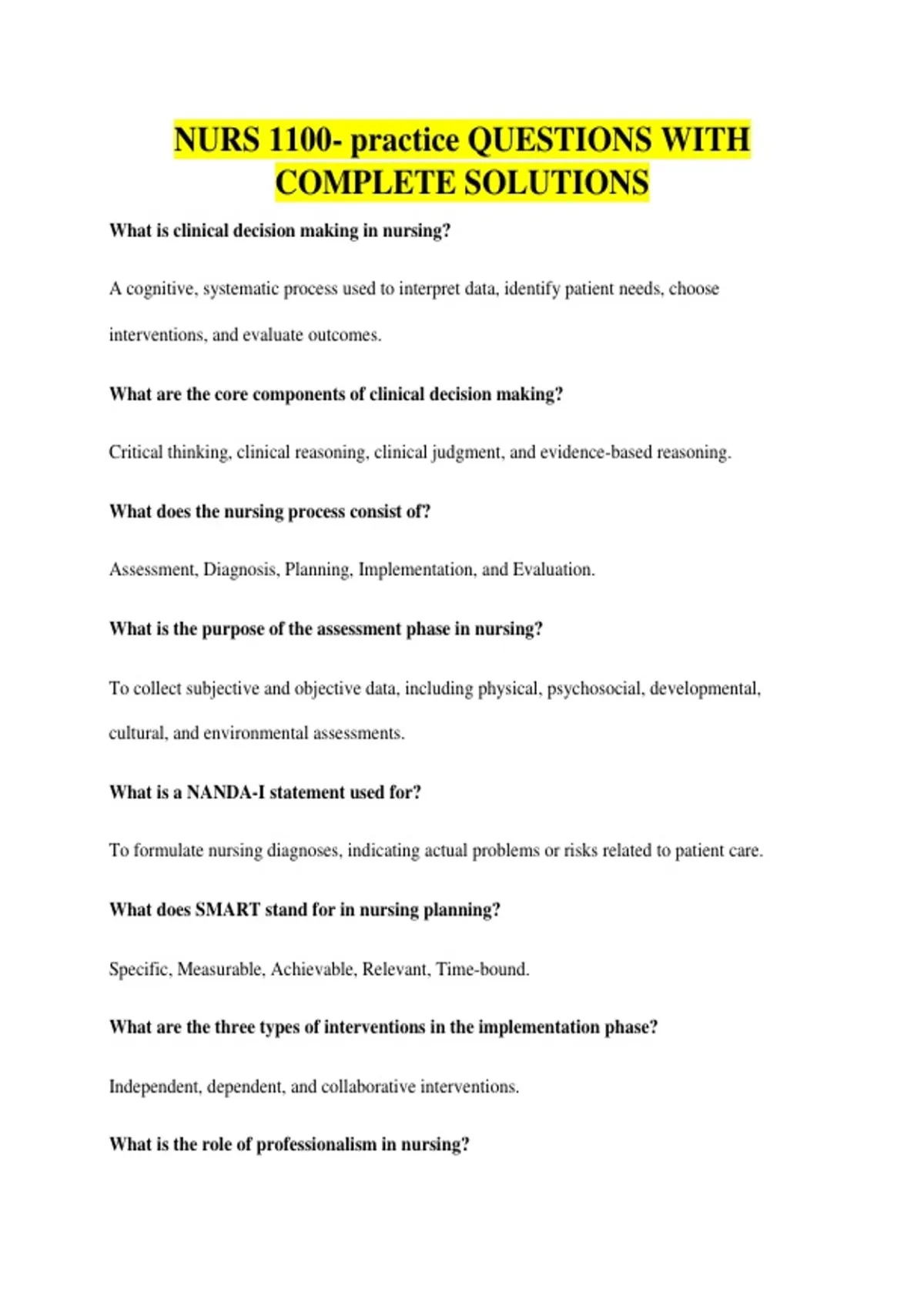 NURS 1100- practice QUESTIONS WITH COMPLETE SOLUTIONS