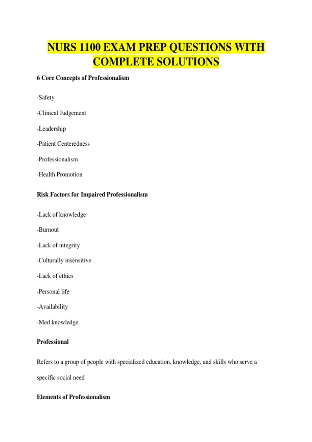 NURS 1100 EXAM PREP QUESTIONS WITH COMPLETE SOLUTIONS