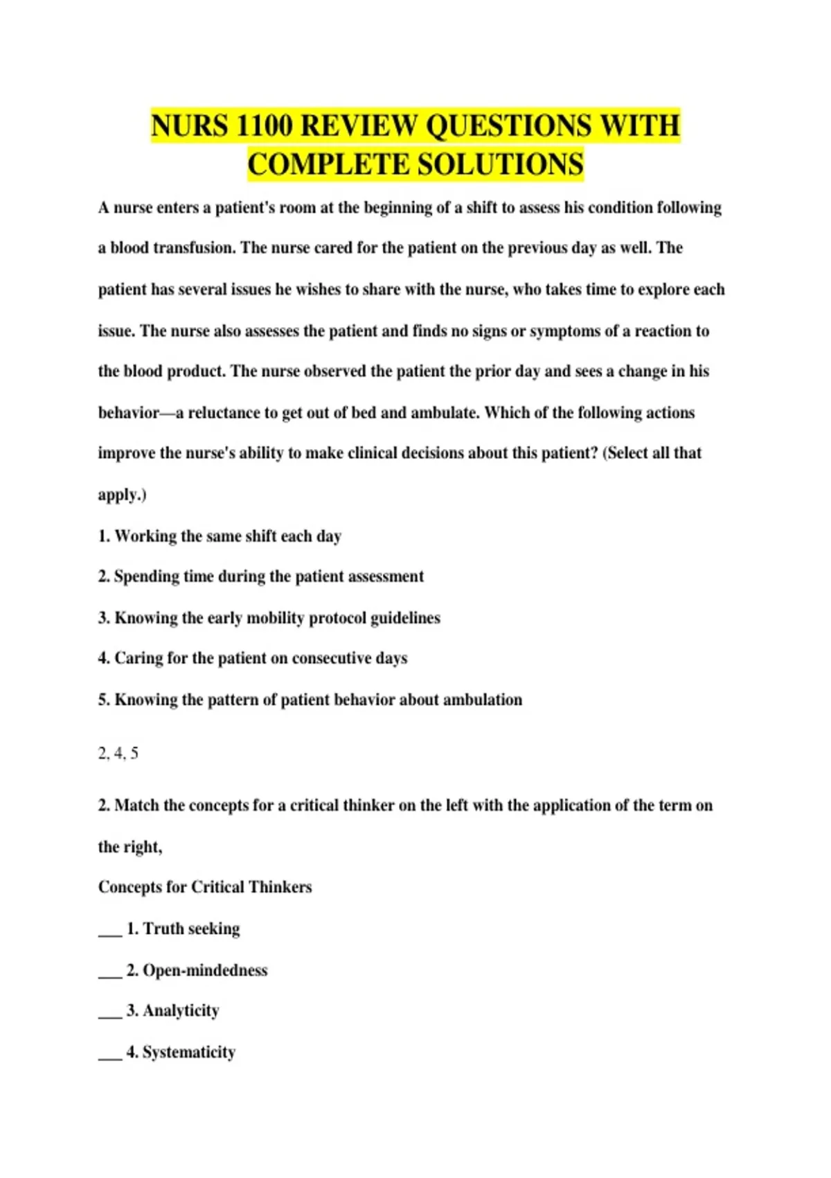 NURS 1100 REVIEW QUESTIONS WITH