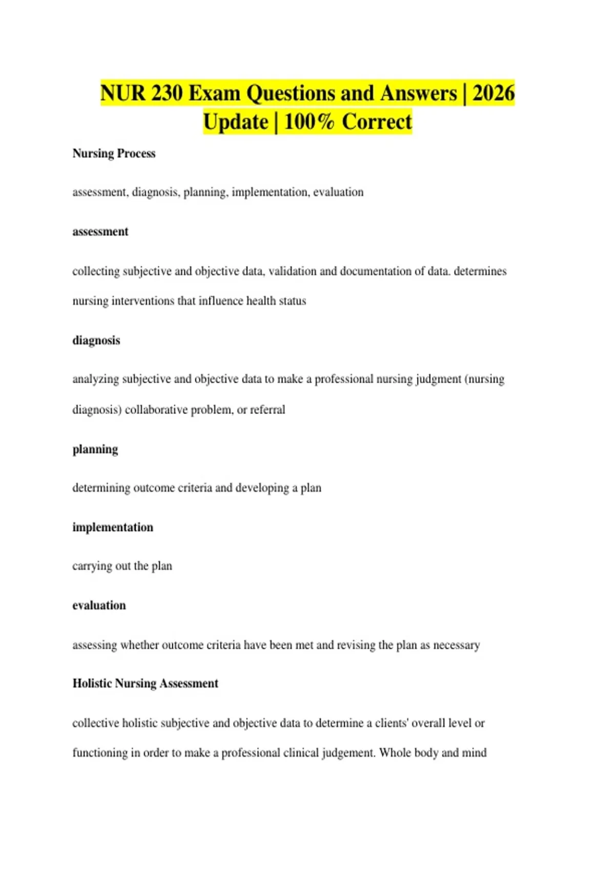 NUR 230 Exam Questions and Answers | 2026 Update | 100% Correct