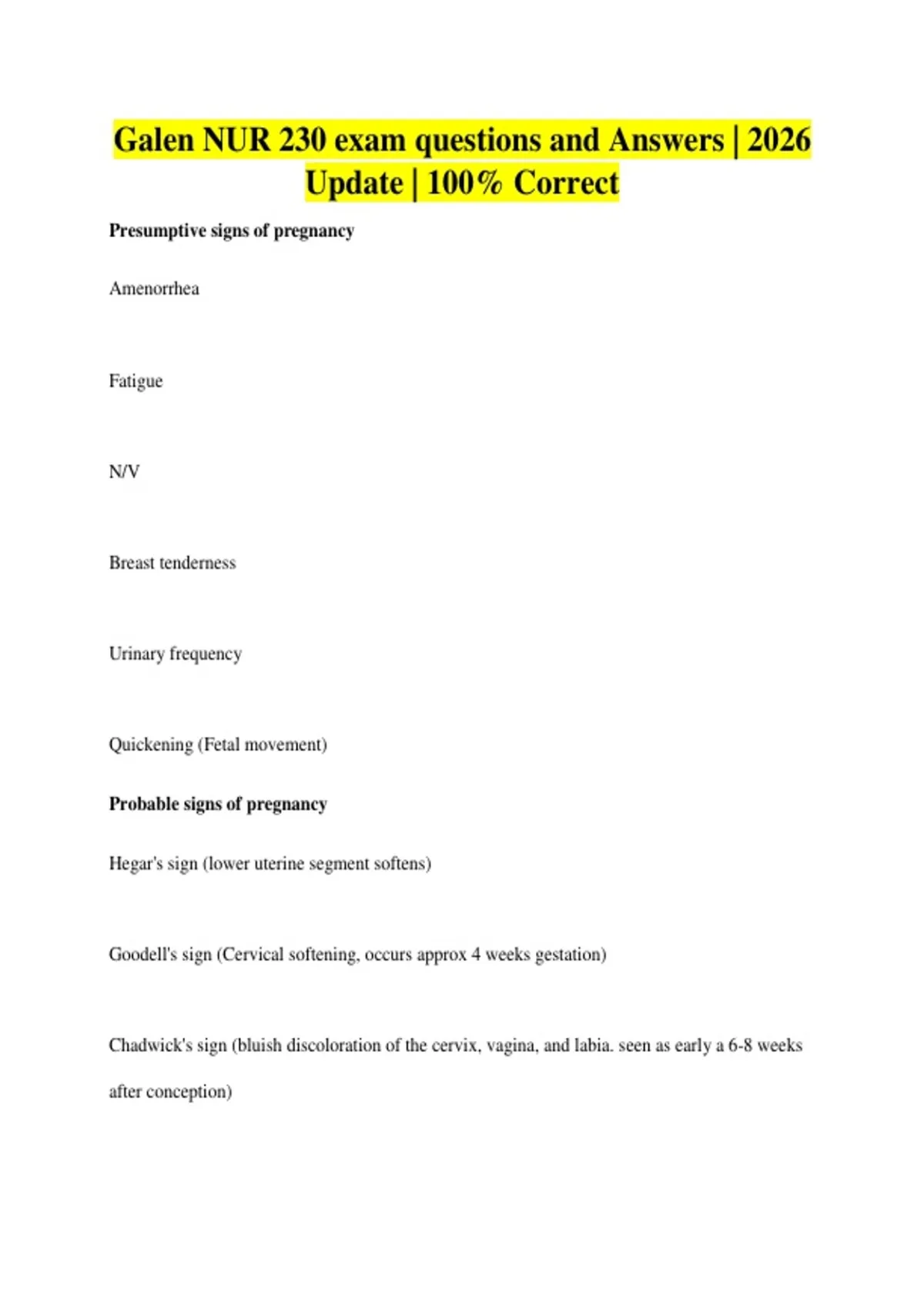 Galen NUR 230 exam questions and Answers | 2026