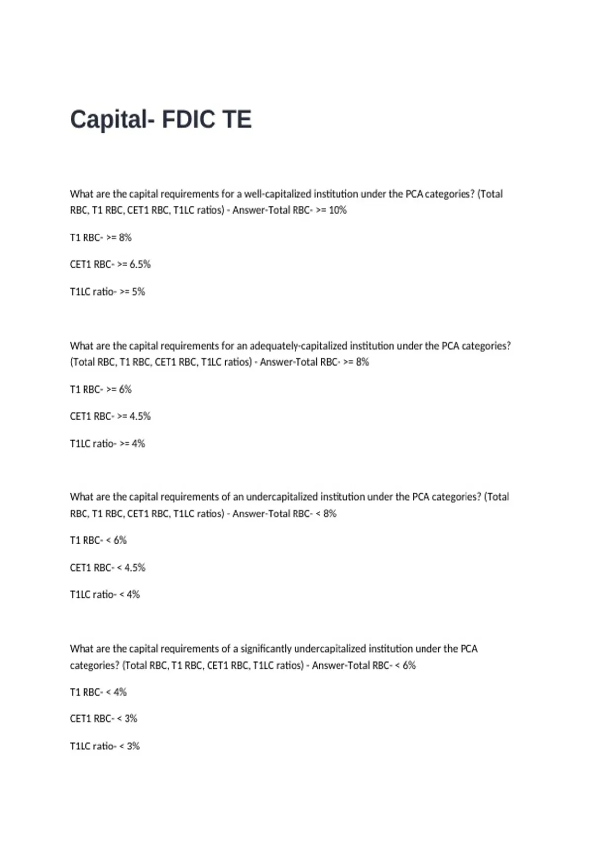 Capital- FDIC TE EXAM QUESTIONS AND ANSWERS