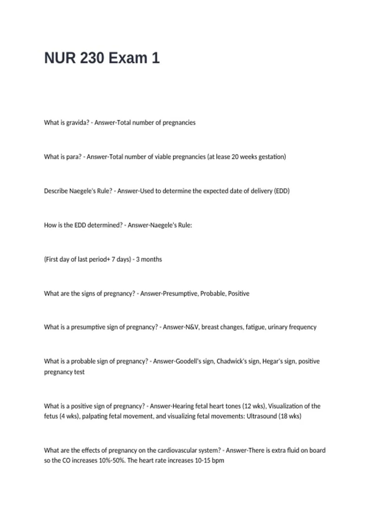 NUR 230 Exam 1