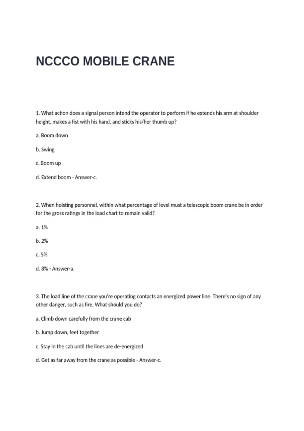 NCCCO MOBILE CRANE EXAM QUESTIONS AND ANSWERS