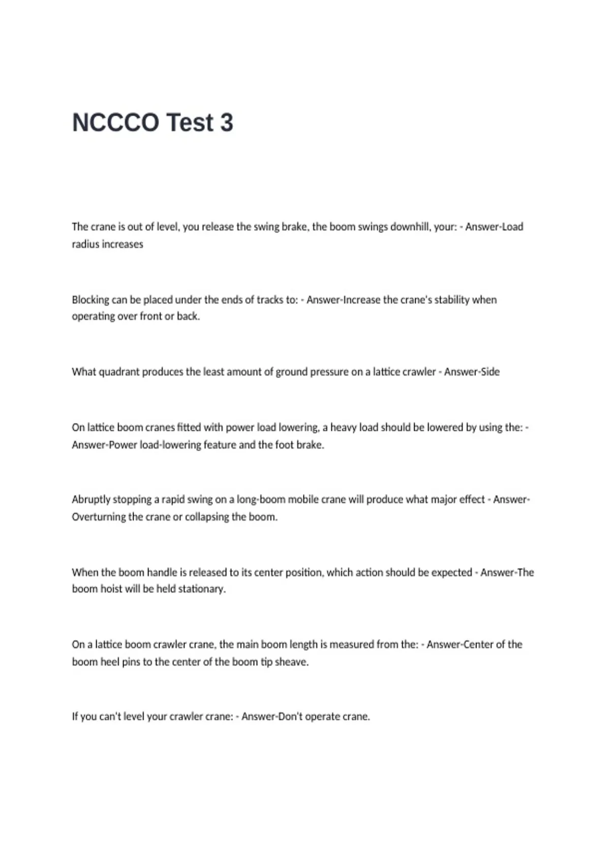 The crane is out of level, you release the swing brake, the boom swings downhill, your: - Answer-Load